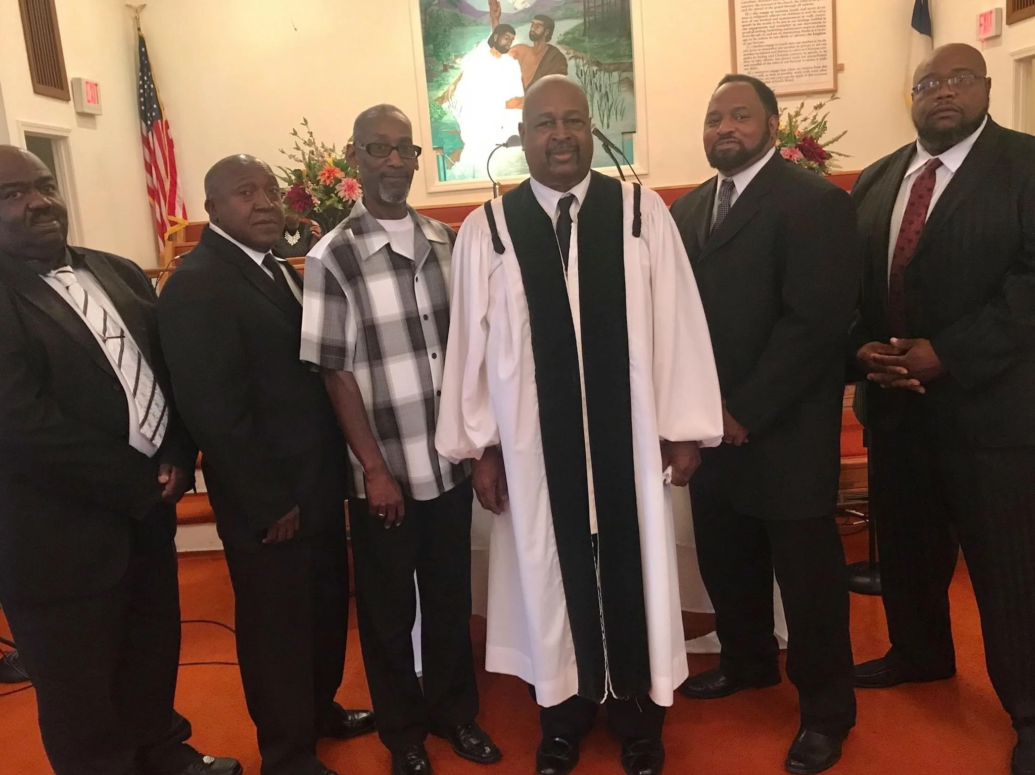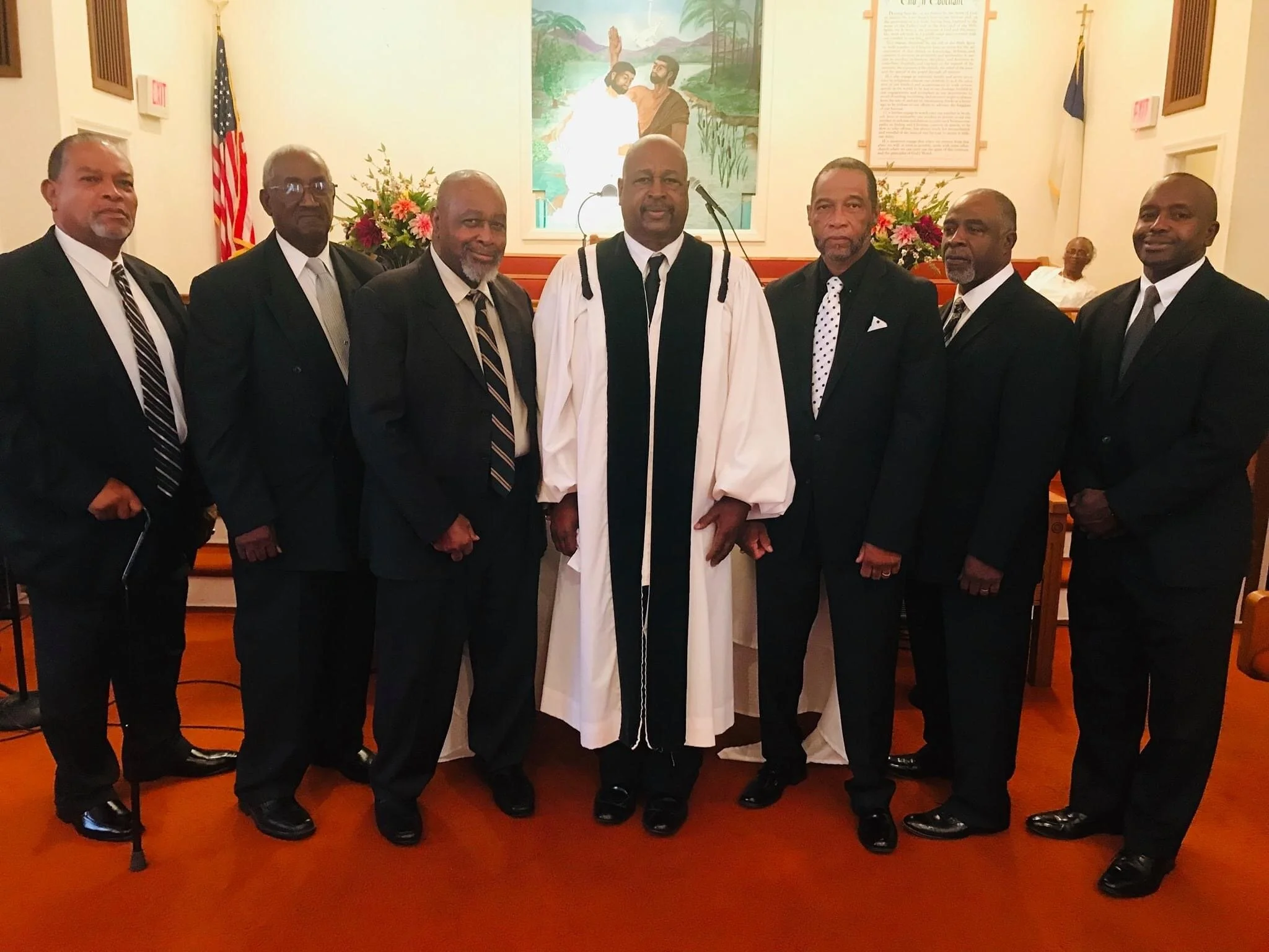 (Pictured Left-Right) Deacons Bobby Richardson, David Rice, Eugene Belton, Rev. Douglass Mazyck, James Calvin Richardson, Thomas Richardson and Kerwin Johnson.